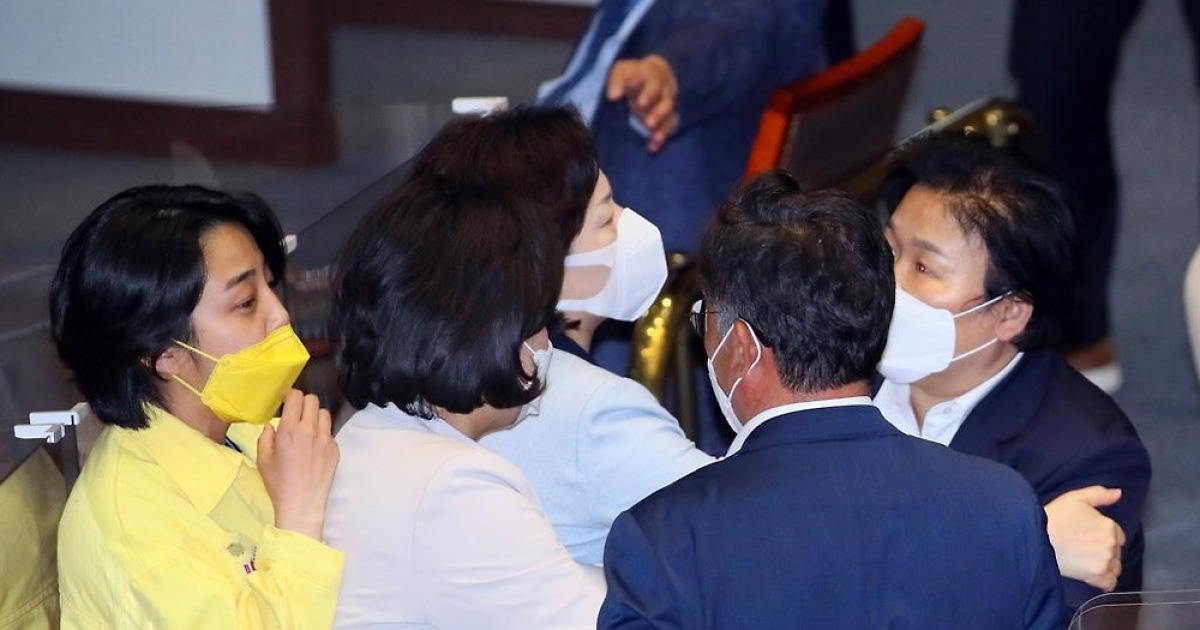 국회 본회의장에서 더불어민주당 문정복 의원과 정의당 류호정 의원 등 두 여성 의원이 고성을 주고받은 일이 14일 정치권에서 회자됐다.